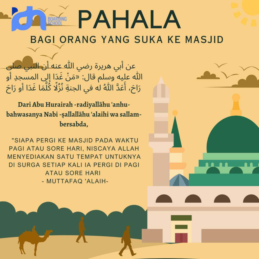 Posteryang saya buat di canva.untuk projek diniyah atau lebih tepat nya pelajaran Hadist.poster tentang PAHALA BAGI ORANG YANG SUKA KE MASJID DI WAKTU PAGI DAN PETANG