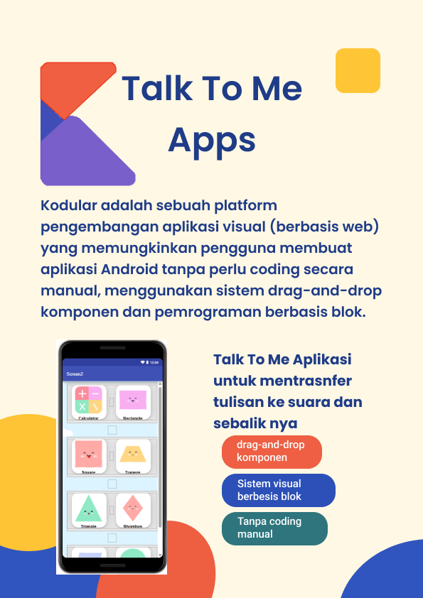 di video ini saya membuat video demo tentang aplikasi yg saya buat di website kodular di aplikasi ini saya bisa membuat beberapa aplikasi untuk melengkapi projek projek saya di idn contoh nya saya di suruh untuk membuat aplikasi ini yaitu aplikasi Talk To Me.