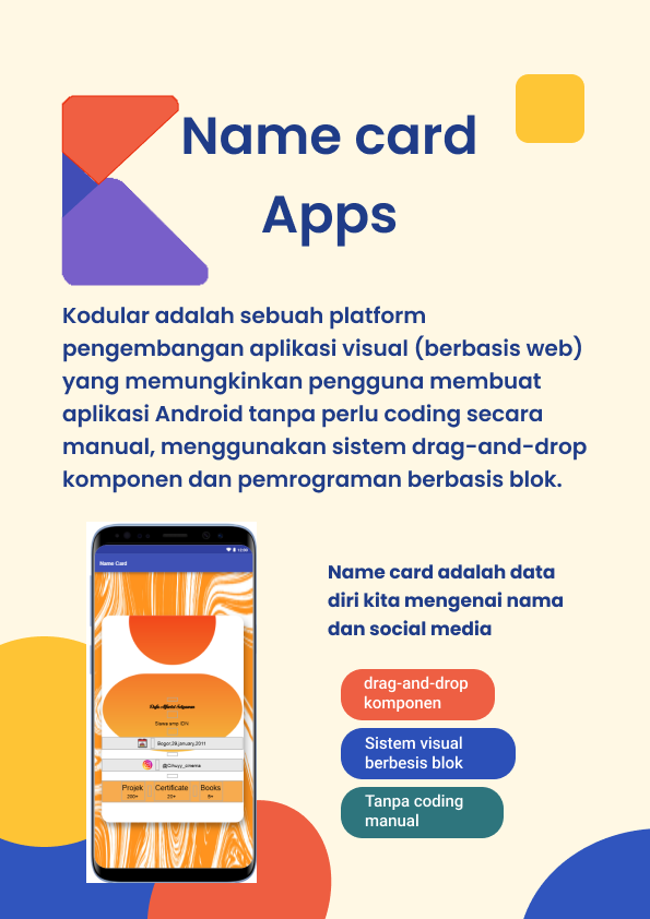 di video ini saya membuat video demo tentang aplikasi yg saya buat di website kodular di aplikasi ini saya bisa membuat beberapa aplikasi untuk melengkapi projek projek saya di idn contoh nya saya di suruh untuk membuat aplikasi ini yaitu aplikasi name card.